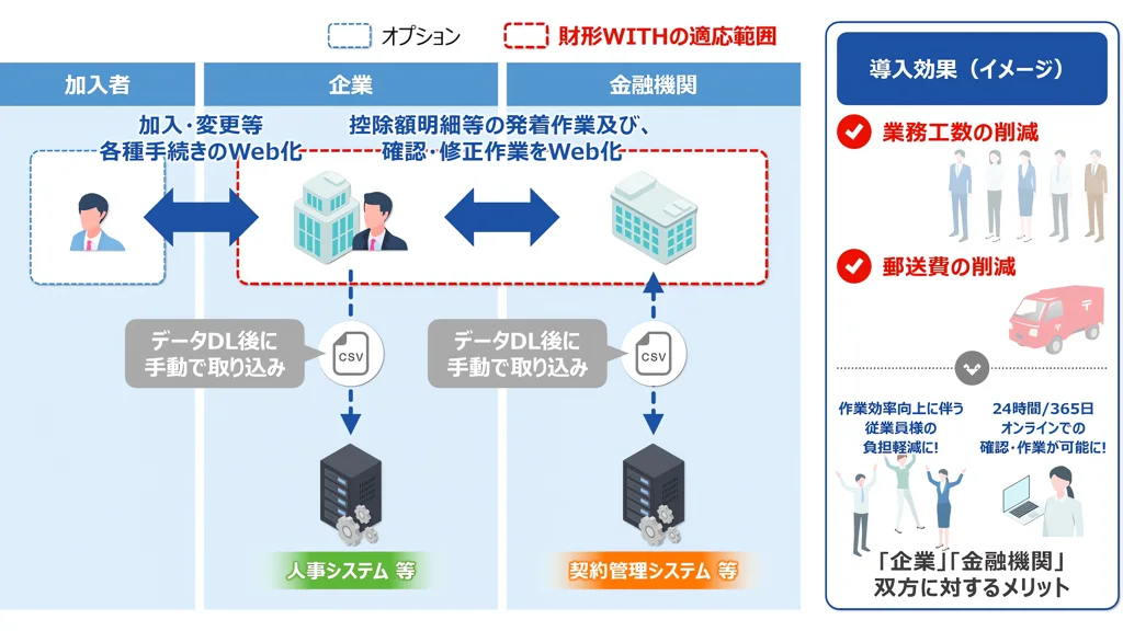 財形WITHでは、みずほ銀行と導入企業・団体の間で毎月発生する控除額明細表など各種帳票の発着や、内容の確認・修正をオンラインで実施できる。SPIRAL ver.1のデータベースに格納された帳票データをダウンロードし、双方が自社システムに取り込める仕組みだ。テンプレートをベースとすることで、要求整理からの通常開発と比べ、低コストかつ短納期での構築・利用が可能になったとしている。