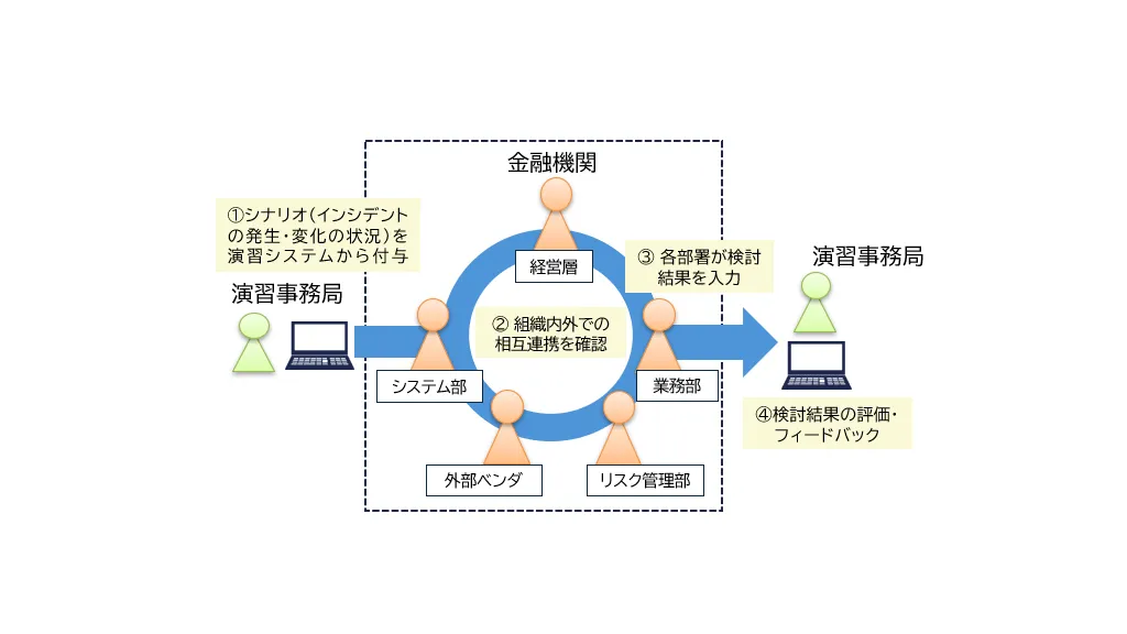 事後評価にも力点を置き、参加機関がPDCAサイクルを回して対応能力を継続的に高められるよう、具体的な改善策や優良事例を提示する。演習の結果は参加機関以外にも業界全体にフィードバックされる予定だ。