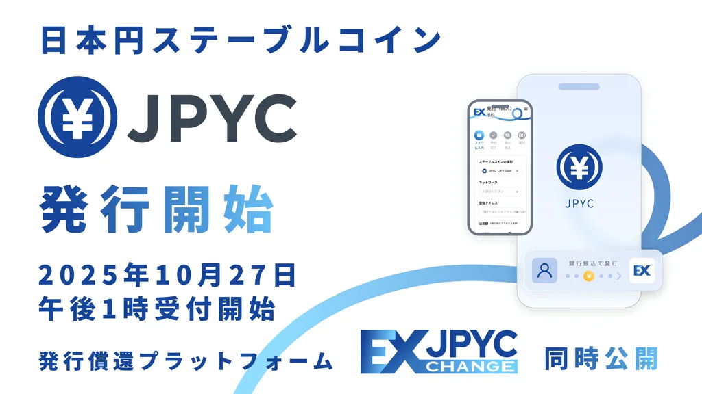 日本初の円建てステーブルコイン「JPYC」発行開始、発行・償還基盤「JPYC EX」公開