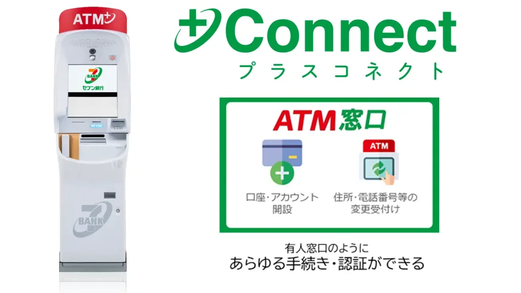 「+Connect」は、各種手続きや認証をセブン銀行ATMで実現するサービスの総称で、その中に、これまで対面が必要だった手続きを原則24時間365日行える「ATM窓口」サービスがある。今回の取り組みでは、全国28,000台以上展開するセブン銀行ATMを、新たな手続きチャネルとして活用する。
