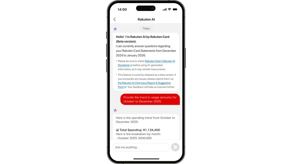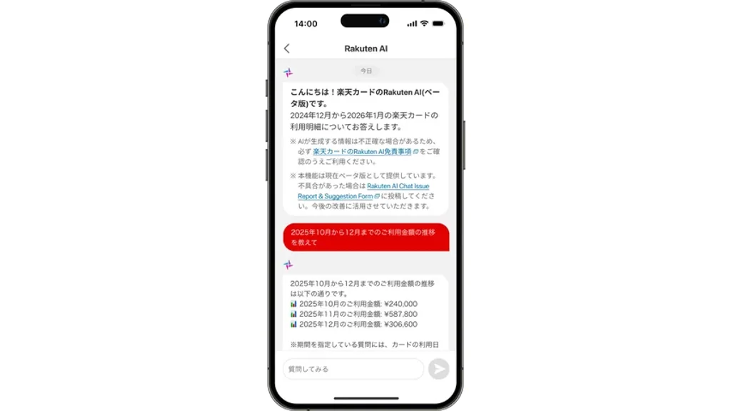 今後については、2026年中に「楽天カードアプリ」へのAIエージェント搭載を予定する。将来的には、利用明細に関する質問にとどまらず、「楽天カード」全般に関する幅広い質問への回答など機能拡充を図るほか、日本語と英語以外の言語にも対応する予定だ。楽天カードは、多様なニーズに応えサービスや機能を充実させ、安心で使いやすい金融サービスの提供を通じて日常を支える方針を示している。