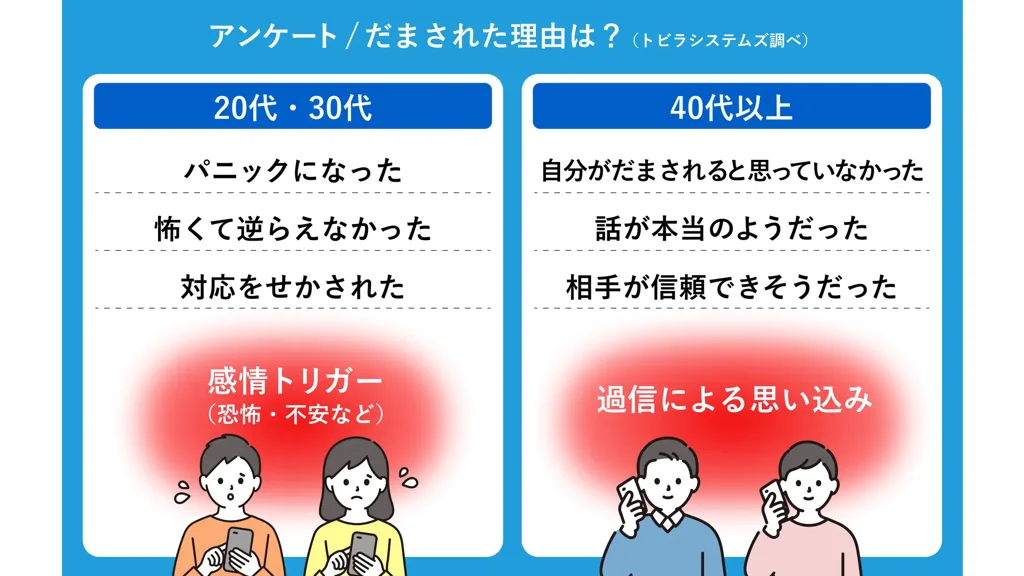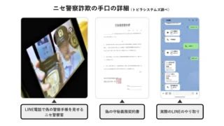 特殊詐欺の被害状況では、警察庁発表として令和7年の認知件数が27,758件、被害額が1,414億円となり、いずれも過去最悪だった。最も多いのはオレオレ詐欺で認知件数は14,393件。うちニセ警察詐欺は10,696件、被害額974.4億円でオレオレ詐欺全体の74.3%を占め、被害拡大の主因になった。同社は、固定電話だけでなく携帯電話も狙われ、20代・30代の被害認知件数が前年比4倍に増えた点にも触れ、以前のアンケート調査では「恐怖」「パニック」など感情的要因でだまされる傾向が示されたとしている。対策として同社は、電話で「お金」や「キャッシュカード」の話が出た場合は詐欺を疑って通話を終えること、警察官がメッセージアプリやSNSで連絡したり警察手帳や逮捕状の写真を送ったりすることはないため応じないこと、不審なら家族や最寄りの警察署、警察相談専用電話(#9110)に相談することを挙げた。