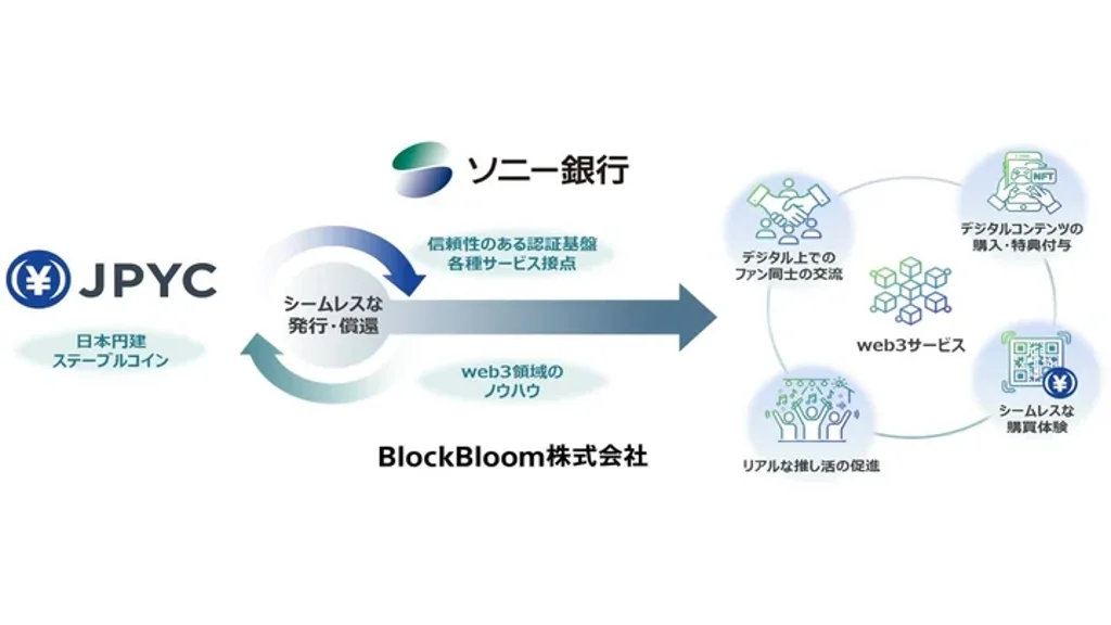 ソニー銀行は3月2日、JPYCとステーブルコイン「JPYC」およびソニー銀行のサービス、さらにエンタテインメントサービスをシームレスに連携させ、新たな価値の創出を目指す取組について、戦略的業務提携に関する基本合意書(MOU)を締結したと発表した。検討にあたっては、ソニー銀行のweb3関連事業子会社であるBlockBloomが、web3領域のノウハウを活用して中心的な役割を担うという。