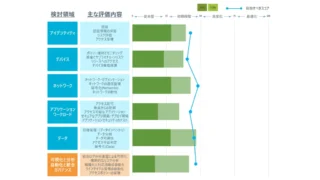 NRIセキュアの新サービスは、CISAの「ゼロトラスト成熟度モデル」に基づき、「アイデンティティ(認証)」、「デバイス」、「ネットワーク」、「アプリケーション・ワークロード」、「データ」といった5つの主要領域と、3つの横断機能である「可視化と分析」、「自動化と統合」、「ガバナンス」の視点から企業の成熟度を評価する。評価をもとに、企業に最適な目標と対策を設定し、効果的なロードマップを策定する。